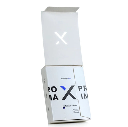 - Proxima Infinity Double Edge Razor Blades: Experience unparalleled smoothness with our Infinity blades. Crafted from high-grade Japanese Hitachi stainless steel, these blades are precision-honed and boast a triple-layer coating of platinum and Teflon for exceptional sharpness and extended blade life.